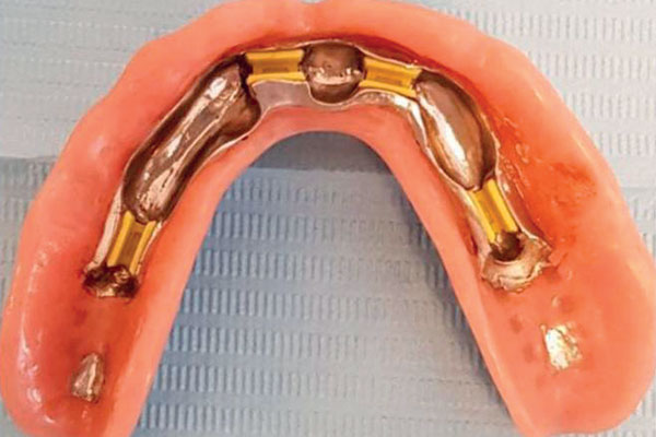 È una protesi completamente rimovibile e personalizzata, la cui stabilità è garantita dal posizionamento sull’arcata da riabilitare di due o quattro impianti collegati tra loro eventualmente da una barra. La protesi risulterà stabile perché agganciata proprio agli impianti o alla barra con attacchi particolari.